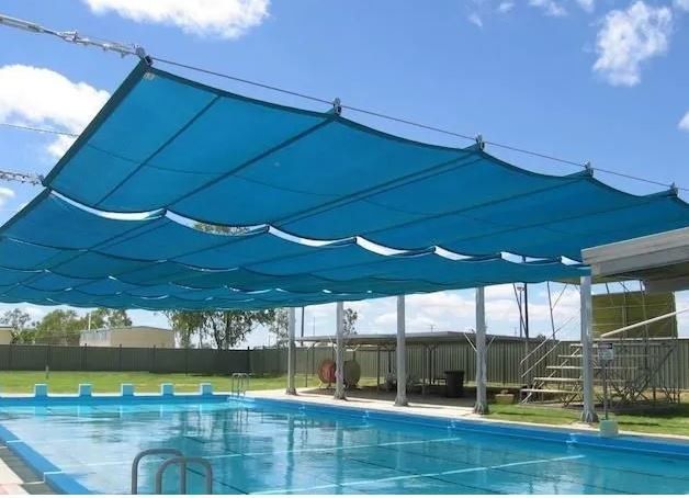 تصميم مظلات المسابح يهدف إلى توفير حماية فعالة من أشعة الشمس الضارة ، مما يخلق بيئة مريحة وآمنة للسباحة والاستجمام.